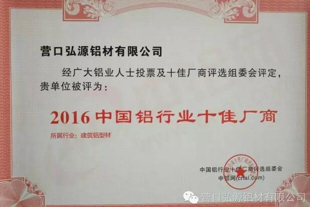- 弘源鋁材榮獲中國(guó)建筑鋁型材十佳廠商